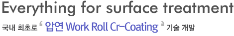 1993년에는 국내 최초로 “압연 Work Roll Cr-Coating” 기술을 개발하여 창원사업장 내에 설비를 준공하고 POSCO를 비롯한 국내 철강업체에 공급하고 있으며 원가절감, 품질 및 생산성 향상에 기여한 공로로 POSCO로부터 우수기자재 공급업체로 선정된 바 있습니다.